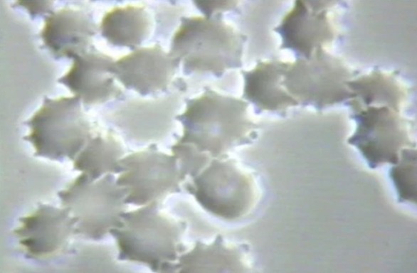 この影響を受けると、丸くきれいで、一つ一つが自立した赤血球が、とげとげだらけの団子状態の形態に姿を変えてしまいます。