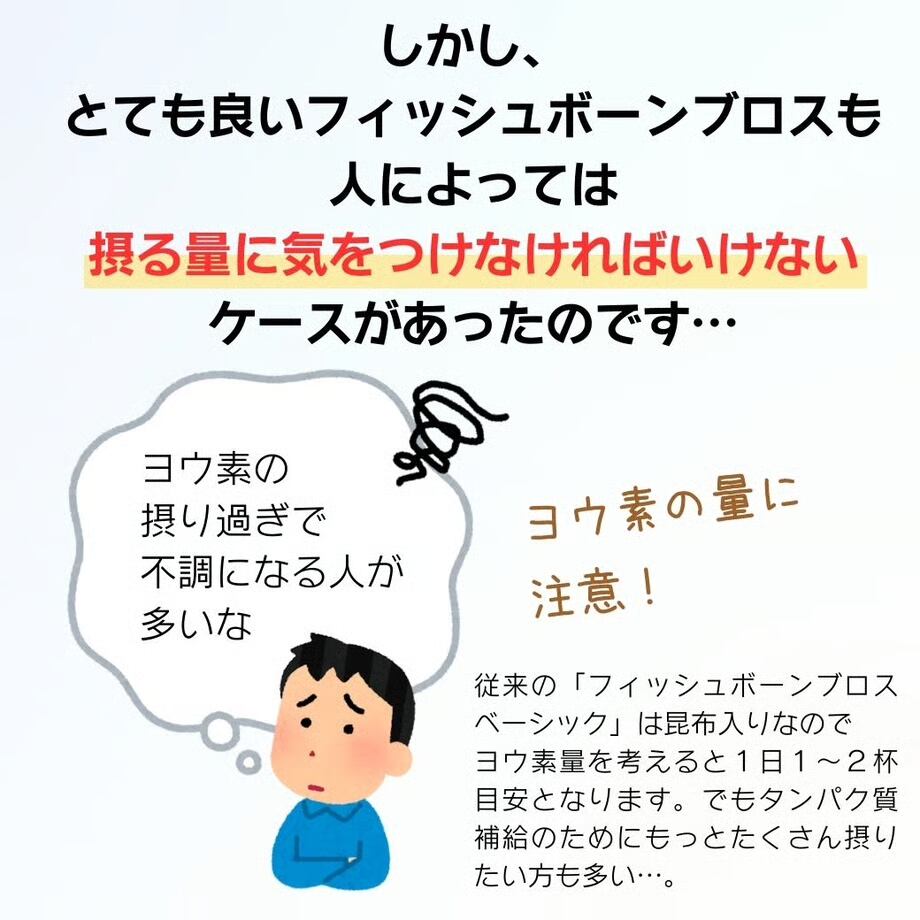 そのために活用するのが『フィッシュボーンブロス ヨウ素フリー』や『フィッシュボーンブロス 舞茸プラス』