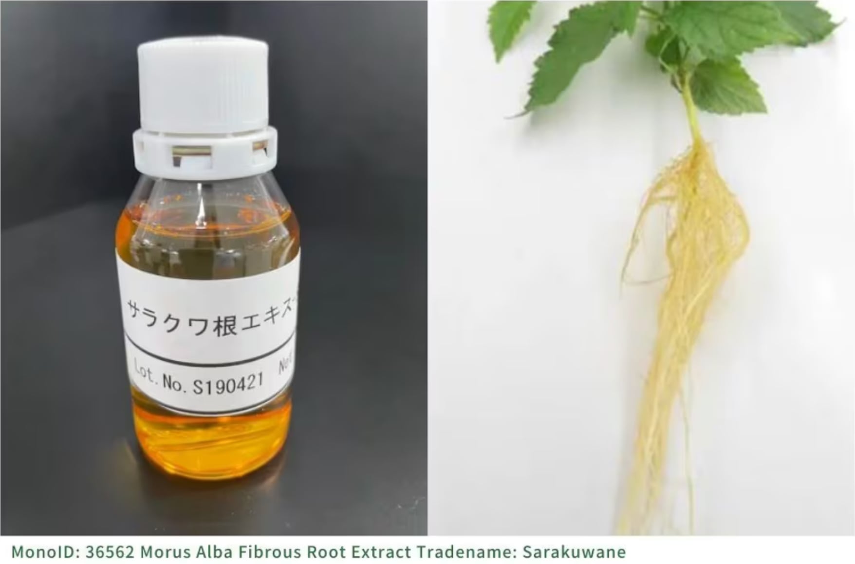 この新型化粧素材は、世界で唯一、モレラ社が栽培に成功したサラ桑という桑の「ひげ根」を原料とする『マグワひげ根エキス』(別名『サラクワネエキス』)です。