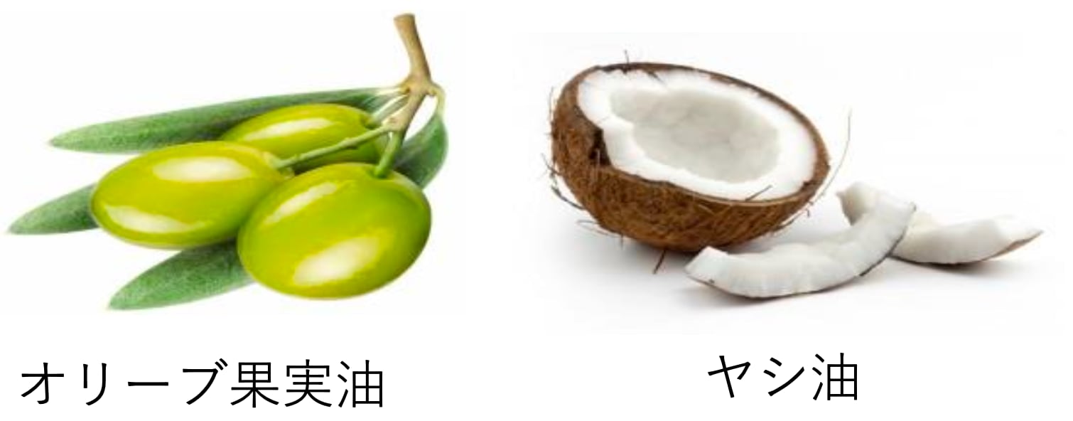 オリーブ果実油・ヤシ油・パーム油(保湿・洗浄力・皮膚柔軟)