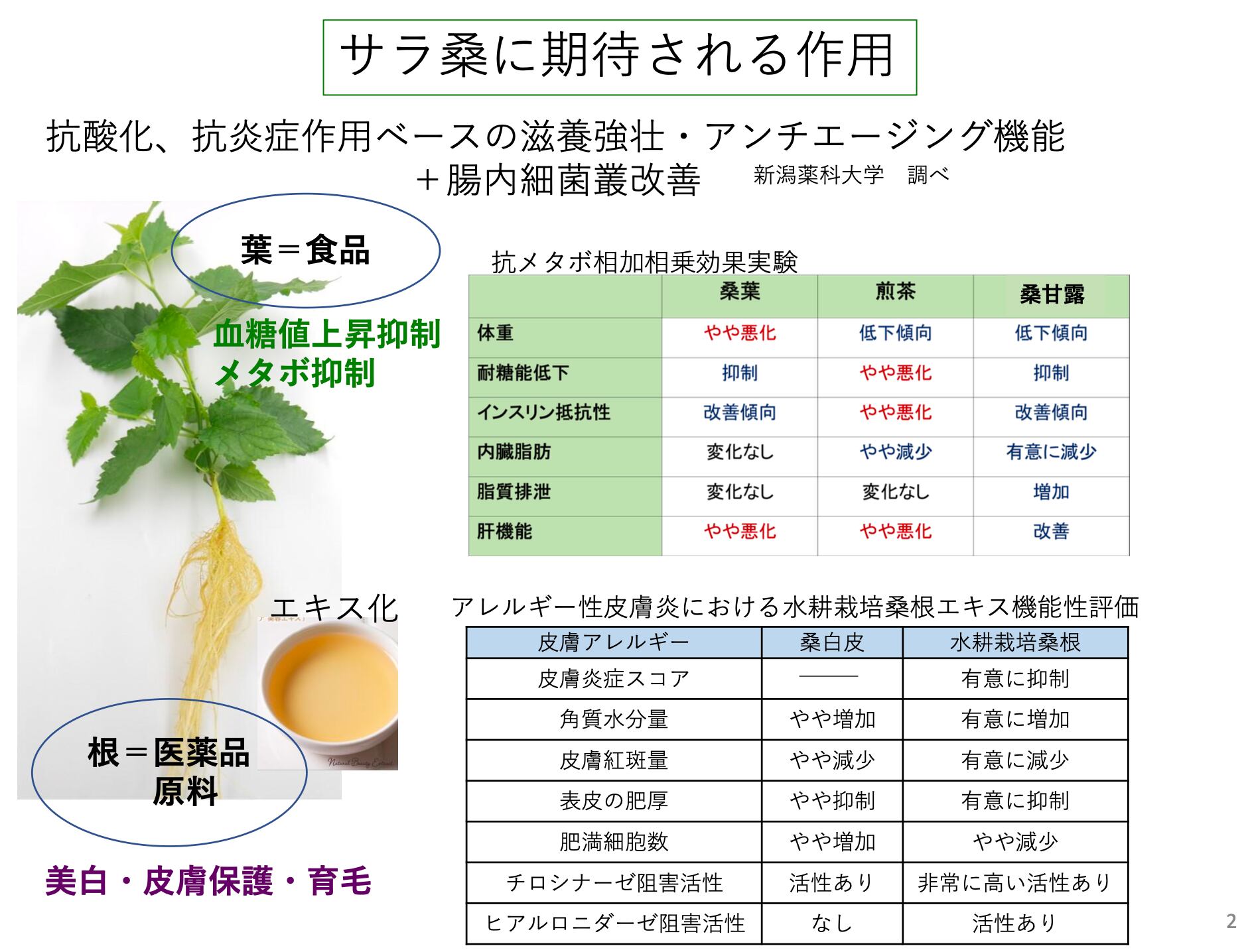 水耕栽培桑の根乾燥物と桑白皮の機能性及び含有成分の比較検討